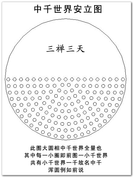 注:亿有四种。瑜伽略纂二曰:“西方有四种亿:一、十万为亿。二、百万为亿。三、千万为亿。四、万万为亿。”按照现在的算法,大千世界内有1000x1000x1000即10亿个小世界。