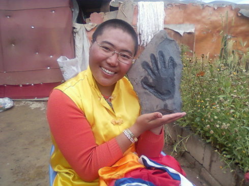 第十六世噶玛吧在青海文成公主庙山顶石壁上按手印