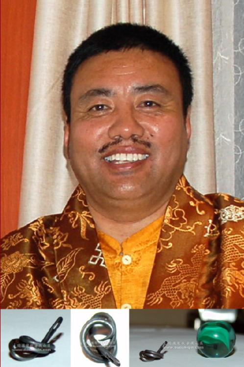龙洋仁波切将钢针放到口中以神通打成了金刚结;捏扁的玻璃球。