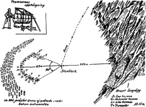 那天,这位博士被带到一片草坡上,西北方有高耸的悬崖包围着。其中一面悬崖壁上有块突出的岩架,可以走进一个离地约两百五十公尺高的洞穴里。当地人正在用巨大的石块在岩架上建墙,但是除非用绳子爬上去,否则没有办法到达那个地方。在距离悬崖约两百五十公尺处有块宽约一公尺的平滑石板,中间凿出了一个深度约十五公分的碗状区域。接着一对耗牛把一个大石块拖进碗状区域,这块巨石高有一公尺﹑长约一点五公尺。