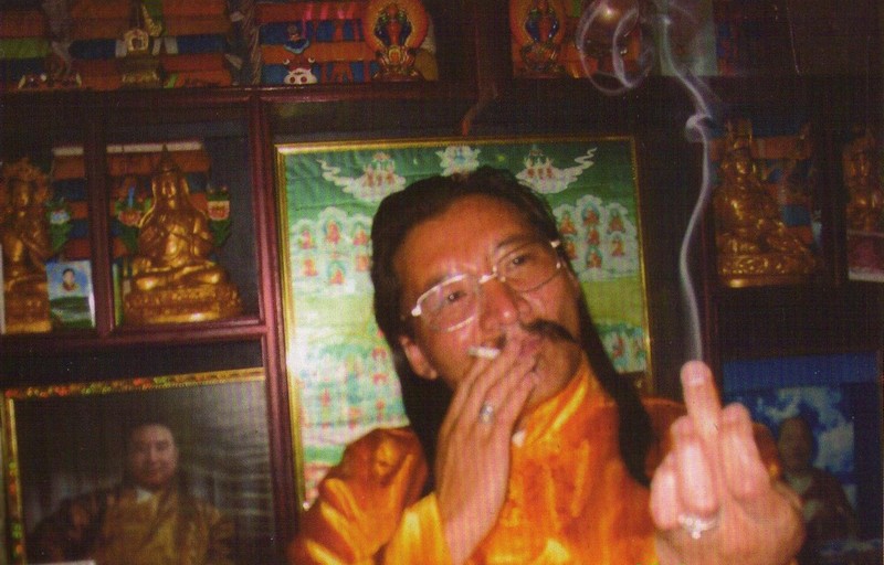 特尼仁波切将吸进的烟从指尖呼出