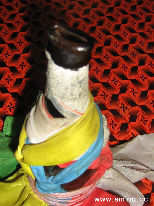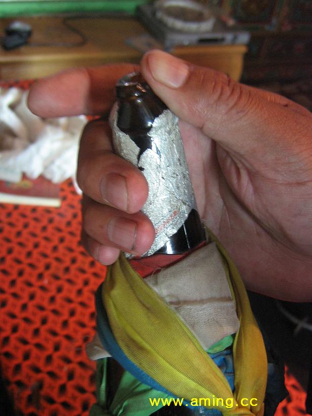 被特布旦尼玛(特尼)仁波切捏扁的酒瓶子口