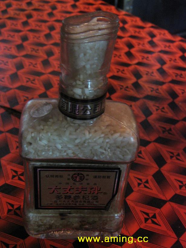 瓶口被捏扁的“大丈夫”酒瓶的正面