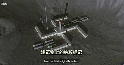 科⾥:对,你看看这个图像,这是我委托制作的,图像是⼀个3D渲染的建筑物上的纳粹标记,这是LOC(⽉球指挥中⼼)原来的样⼦,我还有另⼀个图像,显⽰它是如何