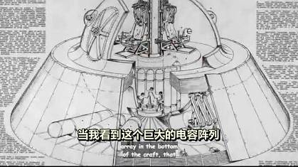 ⻢克:⼀开始,当我看到这个巨⼤的电容阵列在⻜船底部时,我以为它完全依赖于⽐Biefeld-Brown(费尔德•布朗)效应,什么是⽐费尔德•布朗效应,回到20世纪30年代或40年代,有⼀名⼤学学⽣我想是在俄亥俄州,名为汤姆•汤森布朗的地⽅,他的教授是艾尔弗雷德•别费尔德,他决定做个试验⽤板式电容器,并联电容器充电,他在它们之间放了某种绝缘体,他发现当他⽤正确频率的电⼒,正确的电压充电时,通常是直流电,物体会浮动,它会开始漂浮,在YouTube(优⼟布)或类似⽹站上,关于这个有很多争议,⼈们制作升降机,并已经有了这些⼩钟罩类型的电器,在⼀些实验室也,创造出⼀种半硬质真空,可以将所有空⽓从房间⾥抽出,这些东⻄容易短路不起作⽤,所以它们永远不会在太空中起作⽤,但如果你仔细看着外星⼈制造的⻜船,所有这些电容器板都不是敞开的,他们是绝对绝缘的,这就是区别所在,这就是为什么它能够在外层空间运作,因为这些组件没有机会短路,事实上与这些围绕平板的⽯英有关的重要之处在于,它在光学上是清澈的,就像清晰的光学玻璃没有遮挡,没有颗粒污垢,没有⽓泡什么都没有,在我看来,当我看到所有这些平⾏平板电容器,被分段并分成48个径向取向的部分,就像⼤块⽐萨饼分成细⻓⼜薄的馅饼那样,似乎这是合乎逻辑的,在这些楔形物中,每⼀个堆叠有⼋块板,这意味着如果是⽐费尔德•布朗效应,那么会交替产⽣正负正负电,正板在堆叠的顶部,⽽最后⼀个负极板,则在底部,我认为这是推进系统的基础,但是所有这些⼈都否认,⽐费尔德•布朗效应没那么有威⼒,不可能达到那种程度,但是所有谈论的⼈从来没有谈到实际上嵌⼊电介质或绝缘材料如⽯英的系统,证⼈所说的事情之⼀,就是他们不只是使⽤纯⽯英,它们实际上是掺杂重⾦属的⽯英如铀等物质,多年来他们在实验中发现,当⽤重元素掺杂⽯英时,⻜船的起始质量很⾼,这样它在⼯作时能够提⾼系统的推动效率,但随着时间的推移我开始意识到,由于物体是使⽤零点能量作为动⼒来源,这发⽣在⻜船中⼼的⽀柱,这个物体创造出⾮常庞⼤的存储潜⼒整个电容器阵列,整体上实际上开始扭曲时空,事实证明1994年3⽉左右,我记得有位科学家,名叫⽶格尔•阿尔库维耶雷,写了⼀篇关于翘曲驱动的⽂章,这是⼀种空间型公制⼯程空间驱动器,他谈到,通过控制电磁和静电场,可以创造⼀个先于⻜船的时空,就像⿊洞那样,像个奇点,然后在⻜船后⾯会产⽣⼀个扩展的时空,这是⼀种极化过程,正如帕特霍夫描述的那样,他在这⽅⾯写得很深⼊,⽽这种极化过程能够创建⼀个像是在海上冲浪的系统,前⾯有抑制后⾯有推动,⽽且基本上是在这个时空中沿着翘曲的⾯滑动,正是这样产⽣了能够向前移动的向量,但是对于整体概念⽽⾔,令⼈兴奋的有趣⽅⾯是,它创造了⼀种被称为动态本地时空或公制⼯程的原则,就是围绕⻋辆的时空泡沫,是由⻜船⾃⾝内部的,系统造成并影响的,但当物体通过时空移动时,它会在时空的部分时间,以整个单位⼀起,移动⻜⾏器船员组件,以及其中的⼀切,它以⼀个单位移动,受到⻜船对它周围时空所做的其他因素的影响,所以它在后⾯创造了⼀个扩展的时空,压缩了它之前的时空,但由于整个物体是⼀起的,所以根本就没有重⼒的感觉,没有,当⼈们谈论看到⼀个物体,以每⼩时9000英⾥的速度穿过天空,在地⾯上并以这些极速转向⾓度,绘制时间距离时,从未⻅过这样的⼈会说这不可能,认为⻜⾏员会在船内因为撞击⼒,⽽被压成汉堡包,但如果消除质量因素的话就没有惯性了,如果谈到统⼀加速的,时空设计⻜船,其内部和整个⻜船的⼀切⼀起移