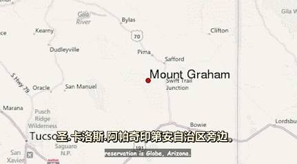 玛胡提:嗯,⼀个很好的例⼦就是在格雷厄姆⼭,就是在亚利桑那州的圣•卡洛斯•阿帕奇印第安⾃治区旁边。⽽格雷厄姆⼭,当时我不知道我还是政府⼈员的时候,圣•卡洛斯•阿帕奇的医⽣和他的妻⼦,她也是⼀名医⽣——他们⼀直在抗议,因为这是⼀座神圣的⼭脉。我不知道为什么他们要抗议。但后来,当我离开之后,天主教会在那⾥建造了那个巨⼤望远镜。