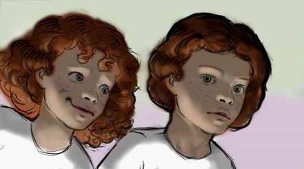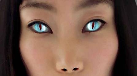 现在,这幅图像描绘了另⼀个⾮常像⼈的物种,⼀个⾮常像亚洲⼈的。他们的肤⾊像是略带点橙⾊,他们拥有蓝⾊的猫眼,虹膜⼏乎占据了你所能看到的整个眼球。