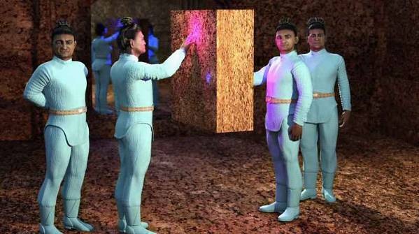科⾥:那⾥发⽣的事,⼤家正在讨论,如何整合他们所分享出来的各种技术。正如我以前告诉过你的,他们的技术主要是由意识来提供能量和控制的。所以实际上并没有太多的物理设备。所以我第⼀件所⻅到的东⻄。是从⼀些像⼩桌⼦的⽅块上⽅出现的。在这些⽅块上⽅显⽰出⼀个全息⽴体图像,这些⽅块中间有像电缆的东⻄。那些是⾮常⼤的结晶体电缆,⽽有某种矿物以螺旋状包裹浸渍着这些电缆。我不懂得那是什么。