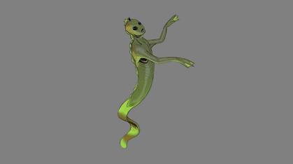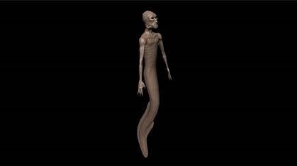 科⾥:最引⼈注⽬的是有⼀个看起来像⽓球的东⻄漂浮在头顶上。它有⼀条带连接到头部眉⼼第三眼的位置,这个巨⼤的⽓球⾥,充满了⼀些液体。当他转过头来时,它也会移动。它会像晃动⼀样,四处浮动,因为他在转头。很明显,这与他的沟通⽅式有关,也可能⽤来探测周围的环境。然⽽,有趣的是,的确如此——并没有看到它传达出太多信息——但后来确实看到了⼀些动静,在它周围的⽔中,出现了少量闪光。