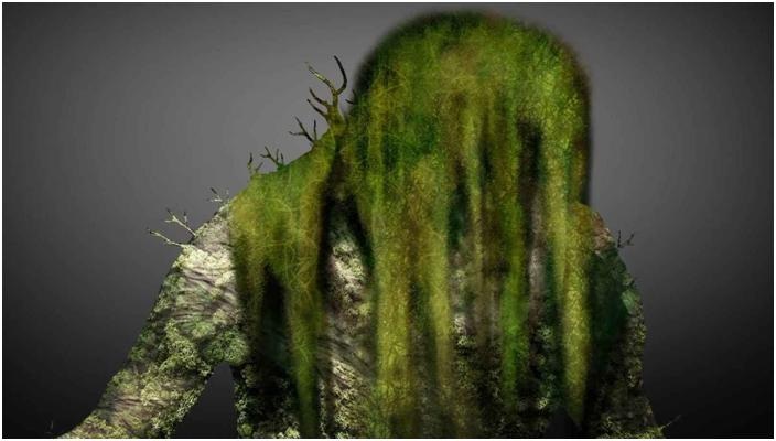 史密斯:它们⾮常紧凑,因为在这⾥你正在看⼀个36英⼨的⽣物。例如,试想⼀个患有侏儒症的⼈,周围的腿和⾻头都会有点紧凑,⽽不是⻓和瘦得像我们的⽐例。在他们的全⾝会⻓满了苔藓。甚⾄会有树叶和藤蔓⻓出来,特别是在背⾯。最明显的是在背⾯有这些藤蔓,并有苔藓⽣⻓出来。然后,,你会看到⼀些普通的绿⾊苔藓,就像你在流⽔的岩⽯上看到的,在⾝体的其余部分。有⾮常细⼩的⼿和⾮常细⼩的脚。