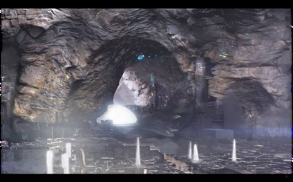 科⾥:是的,我猜像热带⻦类。但我没⻅过。但不是翼⼿⻰,也不像其它恐⻰类。当我们在上⾯看著树梢上的天空,⼤概在树林中间左右,因为有雾看不清楚,耸⽴⼀根历经斑驳的⽯质⽅尖塔。塔的上⽅,接近洞顶,有颗巨⼤的离⼦球,我想是代表太阳或是⼈造太阳。这也是他们创造这个⼈造⽣态系统的⼀部份。
