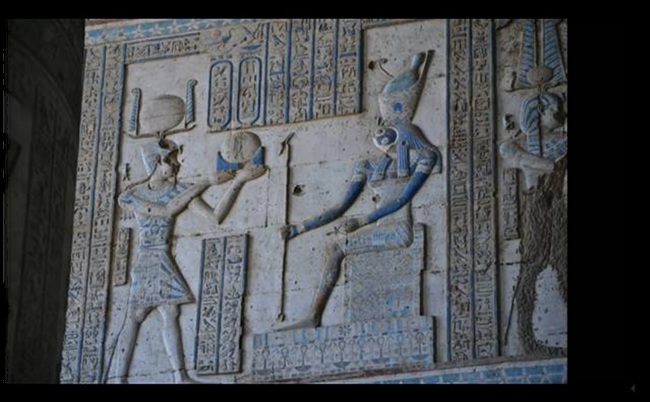 威廉姆•亨利:⼀点没错。你可以说:“那是后⼈加上去的,历史上可没有记载说荷鲁斯是蓝⻦⼈。”那我们再去丹德拉的哈索尔神庙,地点就在附近,也是在同⼀年代建成的。