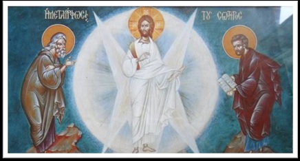 威廉姆•亨利:对吧?在这⾥你还能看⻅在两边的这两位。他们是摩⻄和以利亚,凭空突然现⾝。他们肯定也是扬升的神灵,有能⼒随意凌空来去。他们⾃⼰可能也在蓝球内。所以是很重要的图像。它所要传授的消息就是他们是这样通过艺术和圣像来发送变形的振波。他们管它们成为神圣的传送⼝或是圣镜。那就是他们给这类圣像起的名字。