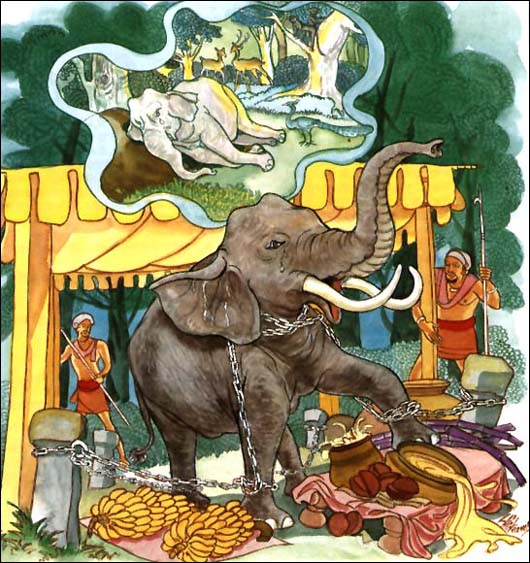 发春期的大象难以制服,被捕捉后不饮不食思念象林的生活。