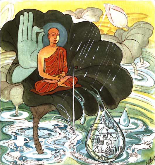 犹如水落于莲叶,如置芥子于针锋,