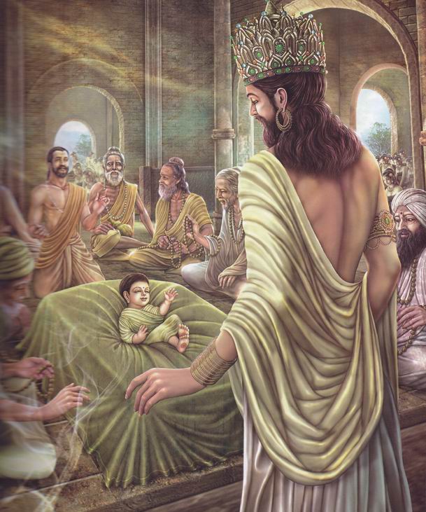 命名大典:佛陀以转轮圣王的身份降生人间,佛陀的父亲净饭王非常的疼爱自己的儿子。佛陀被命名为:乔达摩.悉达多。