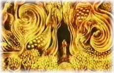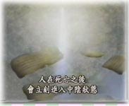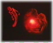 | 向着强烈的慈悲的佛光过去,不要凑近暗淡诱人的光,一定要小心!如果你被这道光吸引,你就得不到解脱,而且会再次堕入轮回。 | 如果在自性中阴(及法性中阴)中迷失了,再生中阴就开始了。死者会感到有一个身体(由于前生有执著身体的习气),可以穿透石头、高山、树木…… | 如果你将投胎在人道,会看到有缘的父母同房。你会情不自禁地被吸引进去。 |
