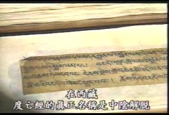 | 这一部中阴解脱经文已经引导村民200多年了。“中阴”代表死亡到往生间的一段时间。 | 在藏传佛教中,死人会进入中阴状态,虽然肉体会腐化,人的神识是不会消失的。为了确保死者安然进入中阴状态,必须不断的对死者的神识念诵中阴解脱经文。 | 根据经文的叙述,在中阴状态,有强烈的光与许多的幻影。人活在世上的时候,如果有修行,就能够认识并去接受这道光,这可以使人们脱离往生时所受到的痛苦。 |