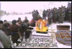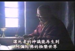 | 才仁巴丹(死者),请你全神贯注的聆听,到了第四天,阿弥陀佛的红光,会在你的面前出现,这道光清澈又明亮,你无法直视,这道智慧的光,旁边有饿鬼道的柔和黄光。千万不要被黄色的光所吸引,如果被黄光所吸引,就会落入饿鬼道,你就会落入饥渴的地狱。不要害怕红光。怀着信心和接受前去,如果你认得出这是你自然的光,你就会得到解脱。 | 颇瓦法的仪轨目的是为了让死者的神识能再生到阿弥陀佛的极乐世界,阿弥陀佛降临头部,并导引神识离开身体…… | 今天,多丹仁波切要教导村民“颇瓦法”,颇瓦法是西藏独特的禅坐观修,使得神识能够脱离肉身。这项识修的目的,是让人们在活着的时候体验生死。……首先想着头上的阿弥陀佛,让神识从丹田经过胸部,再从头顶出去。如果我们经常练习颇瓦法,我们就可以安然度过中阴状态……仁波切向我们解释,如果要死的平安,在活着的时候,必须了解死后的情形…… |