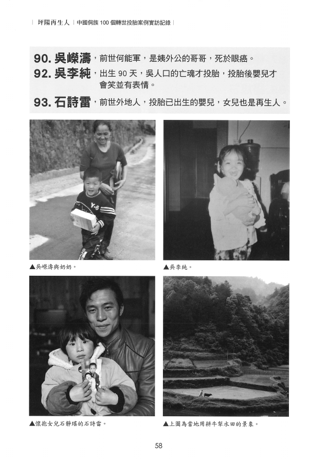 注:在本书案例中,姚最元投胎於刚出生的婴儿,石诗雷投胎於已出生48小时的婴儿。而吴人口的亡魂却投胎已出生90天的婴儿,这样的案例全球罕见。