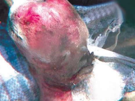 兽医表示,很遗憾没能对尸体进行化验,从照片上无法看出问题所在。医生西班达表达了自己的观点:“这是常见的动物情形,起因脑积水,导致动物异常有一个大头充满了水。这种情况可能会导致正常位置的下巴,鼻子和耳朵转移。”(本文来源:国际在线)