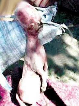 这个怪物出生后几个小时就死去了。从照片上看,它长着一颗巨大的脑袋,还有一张脸,也像人一样有脖子和肩膀,但是却还长着山羊的腿和尾巴,就好像是一个先天畸形的恐怖人类婴儿。