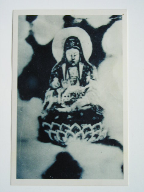 生死书注:大概是1996年,亲证法师送给末学这两张照片。有人可能会说,显像不怎么庄严。试用法华经节选来回答:既然观音菩萨应众生心量而现身,那么可能周围的百姓们在寺院中见过某尊观世音菩萨像,观世音菩萨就以那尊像来化现。