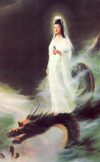 昔观世音菩萨为阿弥陀佛之高弟,具足诸行、等解万法、等慈众生,发大誓愿曰:“尽我形寿,遍度一切众生,若有一众生不得度者,我誓不取正觉。若我于众生未尽度之时,自弃此宏誓者,则我之脑裂为千片。”发此誓已,专心极意,悲智双运,现诸神变,应境行化,度脱众生。如是经无量劫,其所度脱之众生,尽恒河沙所不能计。