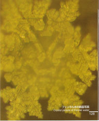 这幅结晶图出自“三分泉”的水(图1) 。“三分泉”在日本山梨县北巨摩郡。泉水在某一处分为三路,故名“三分泉”。这个结晶的每个角也有三个分支。