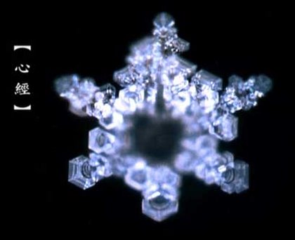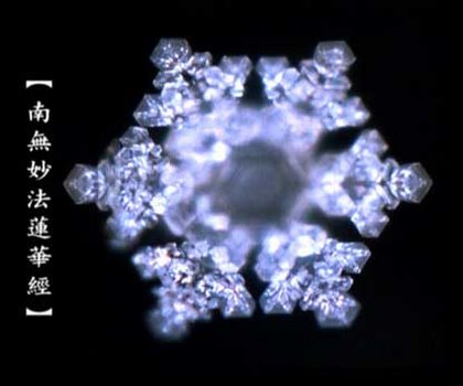 看到‘谢谢’字样的水,结晶呈现出美丽的六角型,相反,看到‘混蛋’字样的水,结晶亦是像听过重金属乐曲一样的混沌零散;