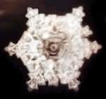 这是听了萧邦的「离别曲」的水结晶照片。图片报告说:没有比得到这张水结晶时更令人感到吃惊的了。摄制这张照片的显微镜的倍数与其他照片是一样的,但是「离别」的曲调竟让基本形状的水结晶被完整地分化得更小,成为地地道道的离别模样。