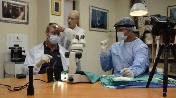 史密斯:我曾经有五年当上了CSeTi(外星智慧研究中⼼)的副总裁,当时是由⻄班⽛的⼀个⺠⽤实验室接收到这个⼫体。其实政府早已最先得到它,但没有⼈知道这⼀点。所以事情就是,在CSeTi⼯作的⼈出了⼀个好主意,就是让我们做⼫体解剖,让我们取得⼀些DA。因为当你取得了DA,那么就能确定很多东⻄。我们去了⼀所主要的⼤学做解剖。所以,按着我的经验,提取这个⾮地球⽣物的⾝体组织——在这些解剖过程中,我已经⻅过超过3000个这类的东⻄——正因为这样,选中了我,让我去做⼫体解剖。我当然也得到了史蒂夫•格瑞尔博⼠和简•布拉沃博⼠的协助。他们作为在现场的医⽣,⻅证了这⼀切,并协助我获取了这些组织样本。
