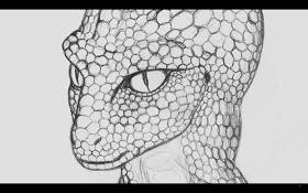 科⾥:是的,爬⾍类的⽪肤和眼睛…肌⾁强健的躯体…爬⾍类的脾性,⾮常好⽃,⽽且很多⼈听到这个描述脑海中浮现出的⼤概就是⼀种魔⿁,这⼤概就是许多魔⿁和恶魔形象的来源。这是它们在中世纪艺术中的形象。