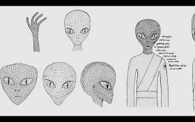 科⾥:好的,蜥蜴灰⼈看起来它们的下颌更窄,头部更加细⻓。这种⻓相眼睛更⼤。它们看起来很像⼈们描画的,你可以看到印在罗斯威尔的⼀个标志上的那种外星⼈,那种典型的灰⼈。