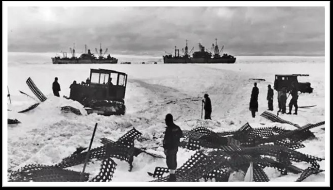 科⾥:的确是。在1947年我们的情报局发现,分裂的德国团体在南美洲与南极洲建⽴⻜地,⽽且我们知道南极洲是个很⼤的军事基地。所以美国国防部决定,派遣⼀⽀由伯德少将指挥的舰队。李察伯德少将。这个称之为“⾼空降落”的⾏动,就是⼤家熟悉知道的⾏动代号,我记不清确切数字,但就是⼀⽀舰队。