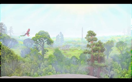科⾥:是的,我猜像热带⻦类。但我没⻅过。但不是翼⼿⻰,也不像其它恐⻰类。当我们在上⾯看著树梢上的天空,⼤概在树林中间左右,因为有雾看不清楚,耸⽴⼀根历经斑驳的⽯质⽅尖塔。塔的上⽅,接近洞顶,有颗巨⼤的离⼦球,我想是代表太阳或是⼈造太阳。这也是他们创造这个⼈造⽣态系统的⼀部份。