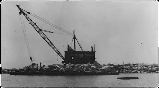 那是30年代早期。海军关注著⽇本在中国所做的勾当。他们决定把东部海军调到⻄海岸,但是没有军港。于是他们需要等‘⻓滩防浪堤’建筑完⼯。