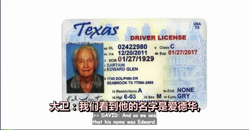⼤卫:我们看到他的名字是爱德华,很明显这是真实的,驾照有效期到2017年1⽉27⽇,那他是什么时候去世的。