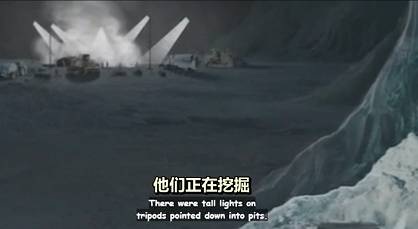 科⾥:所以他是在采集基因样本,⽽在同时就在这之前地下安莎尔族群带我们穿过了还未挖掘的墙,会看到那就是⼀块在冰雪中竖⽴著的⼤⽯头,那个地⽅不远附近就有正在进⾏的挖掘,三脚架上有很⾼的灯照向坑⾥,他们正在挖掘。