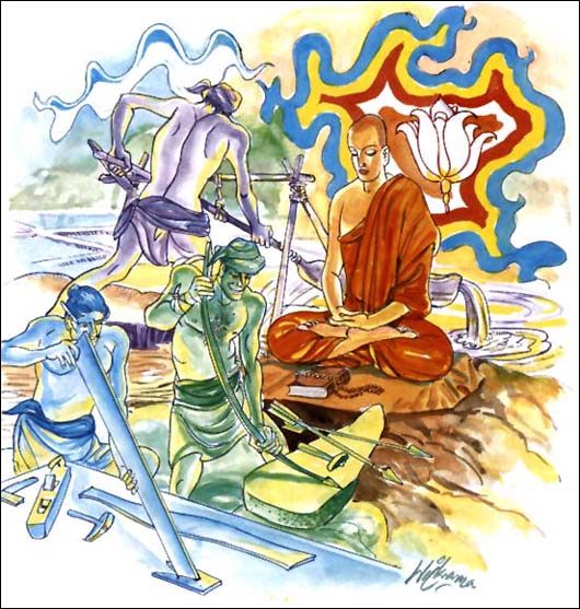 智者调御自身,有如灌溉者治水,箭匠矫箭,木匠绳木。