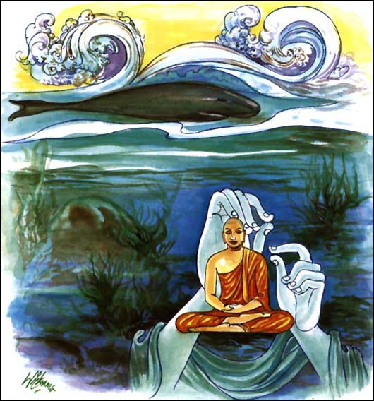 那智者听闻妙法后,心里感到清净;有如一面深不可测的池塘,澄净而清明。
