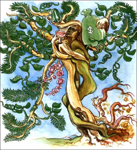 腐败的行为自取灭亡,如蔓萝藤紧缠莎罗树。