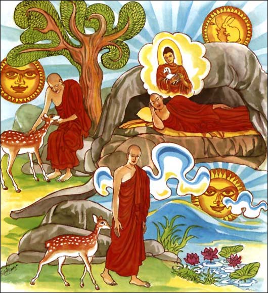 昼夜常乐于不杀生的佛弟子们,常善与自觉醒。
