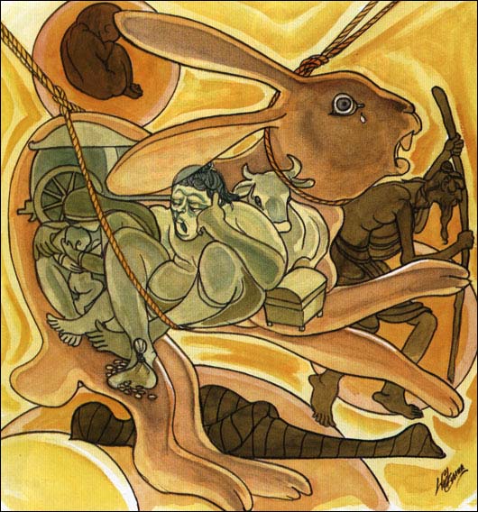 被爱欲驱使的人,如狡兔奔向罗网,长期受苦。