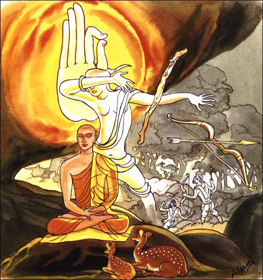 不用刀杖,不杀害也不指使他人杀害者,我称他为真正的婆罗门。