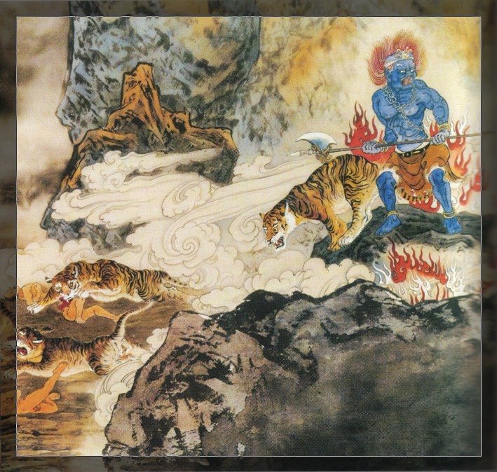 贪腹口欲,山珍海味犹不足,还要置网设陷捕捉野味,如山猪、野鹿、猴子等。凡此贪食动物者,死后入虎啖狱,成为老虎之美味佳肴。又《恶鬼报应经》云:妊身妇女,以药化胎,亦得是报。世风日下,道德式微,许多无知少女、妇女经常堕胎,尚不知犯此罪来日要入虎啖地狱之可怕!