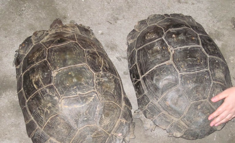 大家离开了狮吼堂,这时有佛友说起今天有居士放生,给寺院送来了两只买来的据说有几百岁的大乌龟,正暂放在地藏殿里养着呢,提议大家去看一下。于是大家就来到来到地藏殿,只见两只身长六七十公分、体重几十斤(估算)的老龟正安静地伏在大殿的地上,大家一起给它们念了三皈依文后,就各自同两只老龟交流起来:"要知道忏悔,改恶向善,在九华山地藏菩萨的道场里,要好好的修行,好好的发愿,将来离苦得乐,舍去这个畜生身,往生西方极乐净土,六道轮回太苦了!"……"大家看,它在点头呢!"大家顺着一位师兄的提醒看去,那只体型稍大的老龟刚才一直把头缩在龟壳里,现在果然把头探了出来,正在佛像前连连点头呢!即像是顶礼面前的佛像,又像是在表达自己已经听懂了大家的心里话。