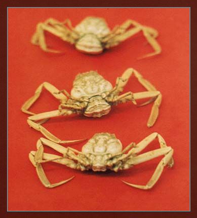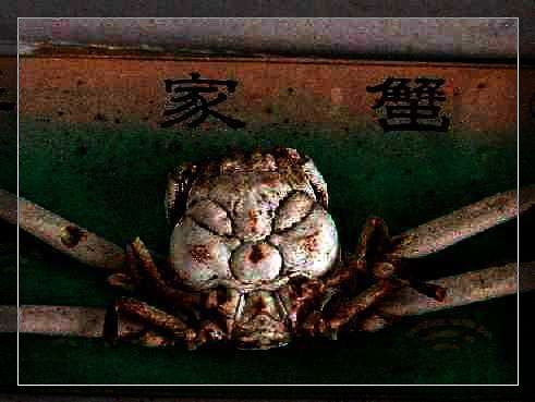 日本人为什么叫它平家蟹呢?这里还有一段典故。平氏家族原是日本有名的一门武士家族,1185年和源氏家族在獭户内海的澶之浦一战,被源氏打败,平家武士们葬身大海。日本人认为这种蟹就是平家武士们亡灵的化身,因为它背甲上面的沟纹象一个怒气冲天的人的脸谱:两眼竖起,口成八字状,看上去是带着许多仇恨的样子,又因为它们多生活在濒户内海,所以日本人称它为平家蟹。