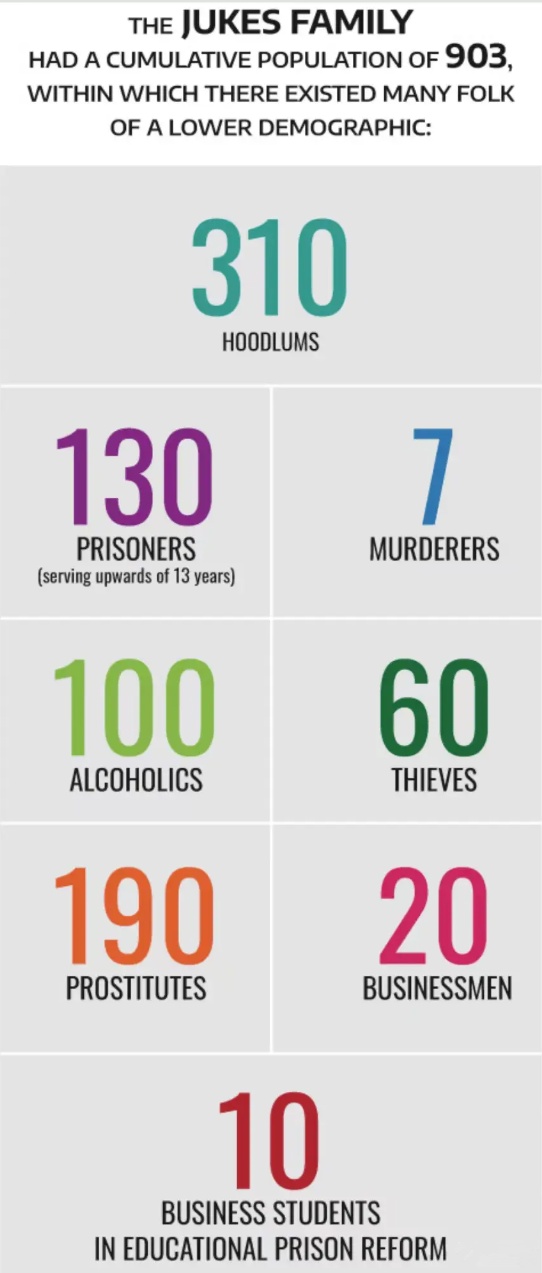 那么 《尤克斯·爱德华兹/Jukes-Edwards》到底叙述了什么样的两个家庭对故事?做了什么样的比较?200年几代人发生了何种变化?