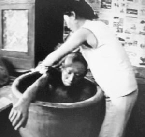 迦叶菩萨白佛言:‘世尊!煮肉、炙肉、斩肉杀生之人分别几处?’佛告迦叶:‘煮肉者堕镬汤地狱,纵广五百由旬,其中有水,其下有火,持火烧之,溃溃乃沸,驱煮肉之人入此地狱受其大苦;炙肉之人堕炙床地狱,纵广八万出旬,其上铁床,其下有火,持火烧之,驱炙肉之人卧之在上,肉干燋烂,受其大苦;斩肉之人堕到碓地狱,其中力士其数五百,斩令万段,吹令微尘,还复受其大苦。’